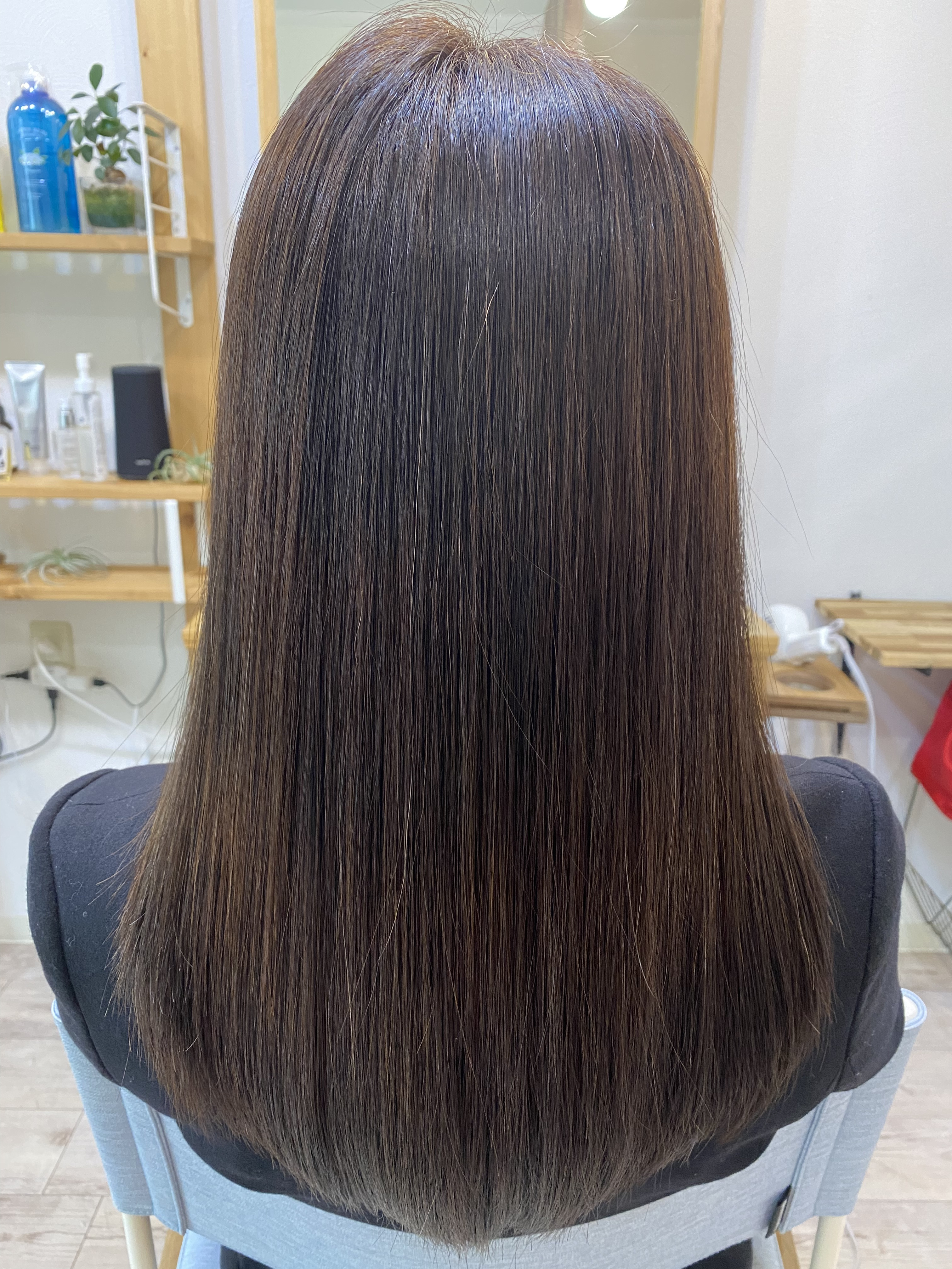 カラー剤自体がアルカリが少なくダメージしにくいものを使用しました。